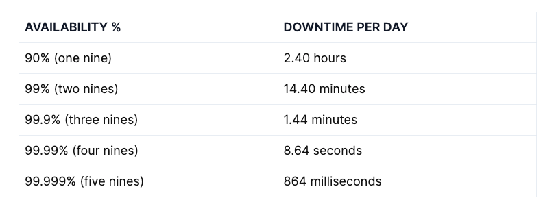 Here’s a handy chart that demonstrates the availability percentages in terms of actual downtime.